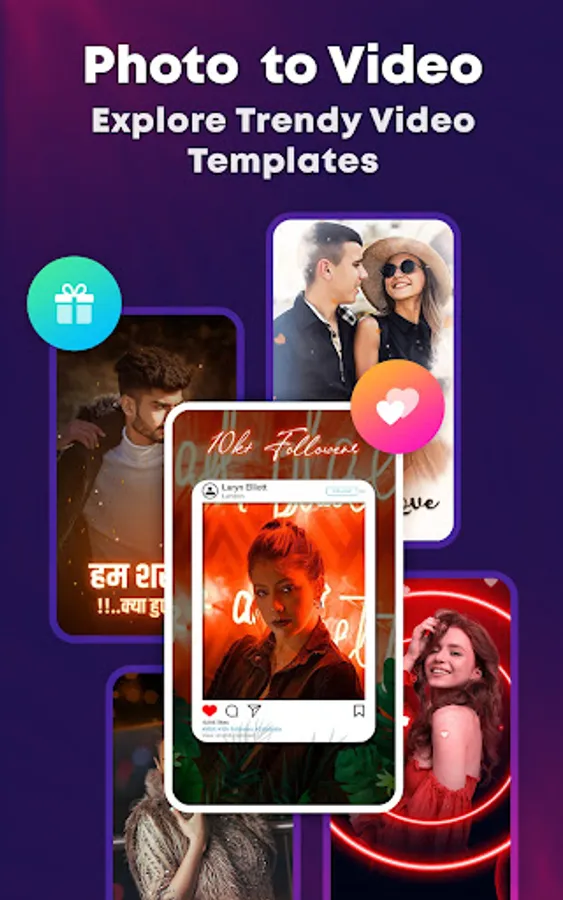 * Create attractive video statuses with category-wise templates, trendy effects, and music tracks available in all languages.