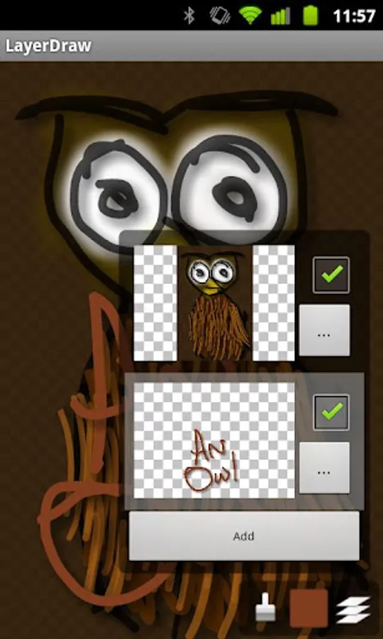 LayerDraw is an image editing program that is optimized for tablets and phones. You can draw images in portrait or landscape mode, create separate layers for each part of an image, set background colors for each layer, move and resize layers, and (on Android 3.0 and above) set the opacity (alpha) for each layer.