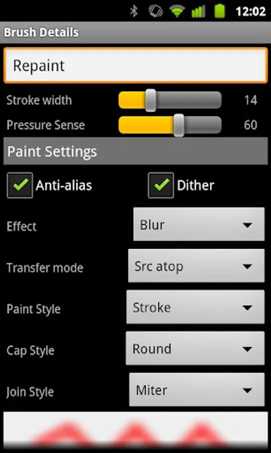 Create custom Brushes for everything from drawing simple lines to drop-shadowed lines, fill areas, neon effects, fade, re-paint existing lines, color empty areas between other areas, and more. Brushes are also pressure-sensitive -- Press harder to draw wider lines or more intense colors.