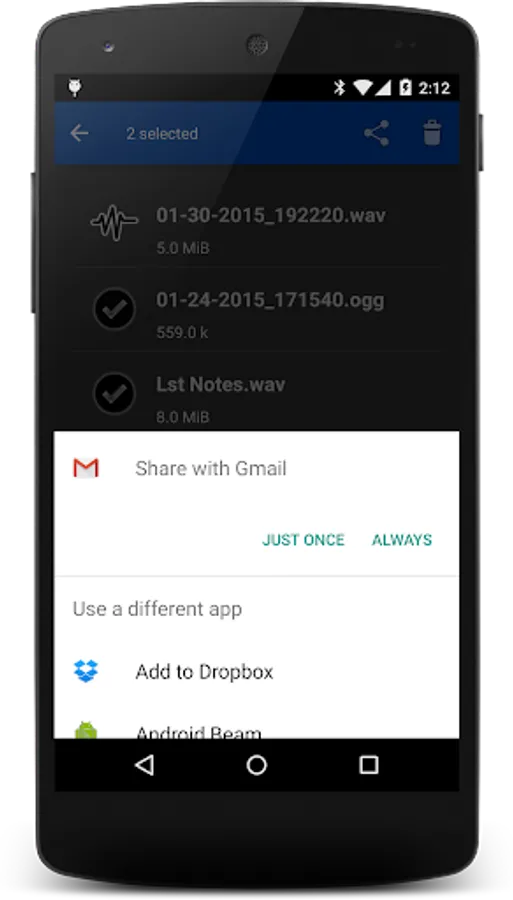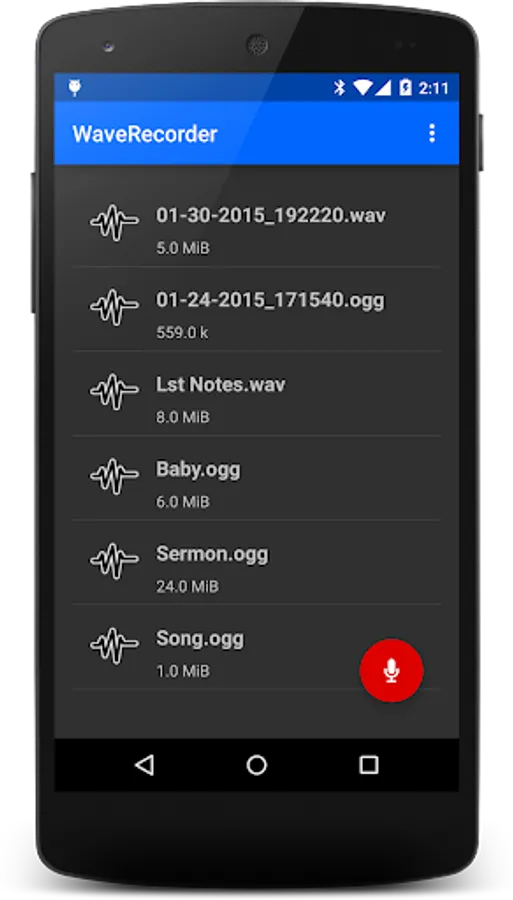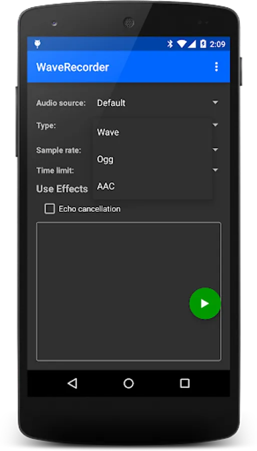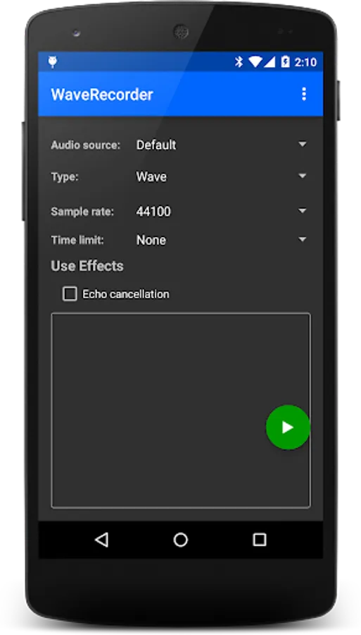 WaveRecorder is a basic audio recorder that lets you record from various audio sources on your Android phone and specify a sample rate, output file type, and an optional time limit. Nice for recording voice memos, etc.