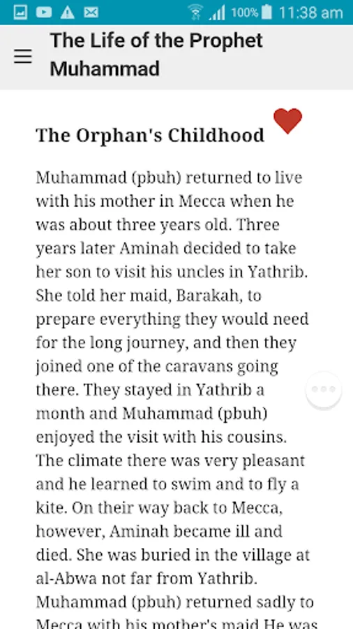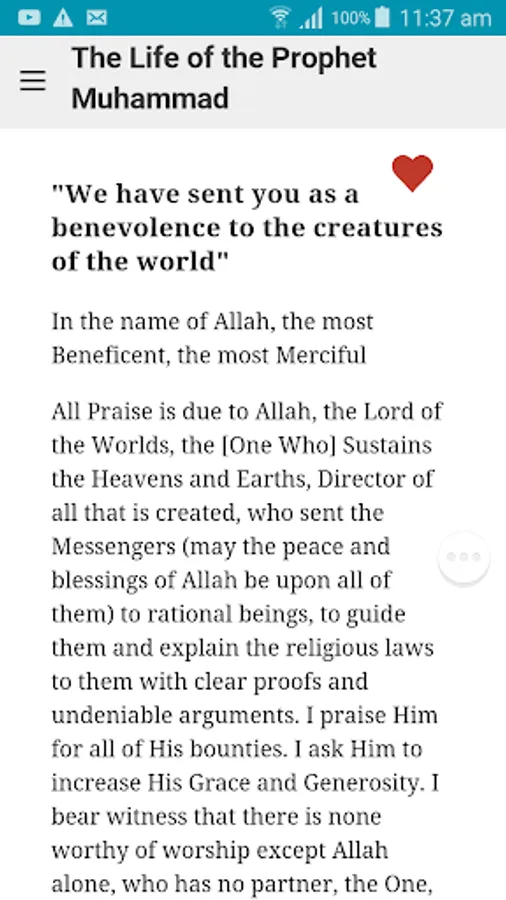 In this app, you can learn the life story of Prophet Muhammad peace be upon him in English. The app is devided into parts following a chronological order from his birth to his death, and each part is devided into sections in the form of small paragraphs to facilitate reading.