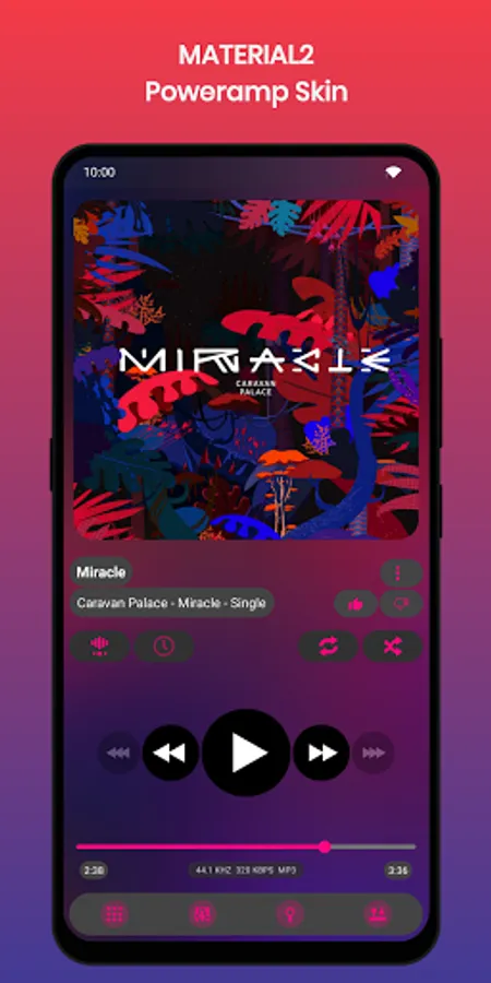 Material 2 is a skin that will completely change the look of your music player. PowerAmp V3 is needed.
