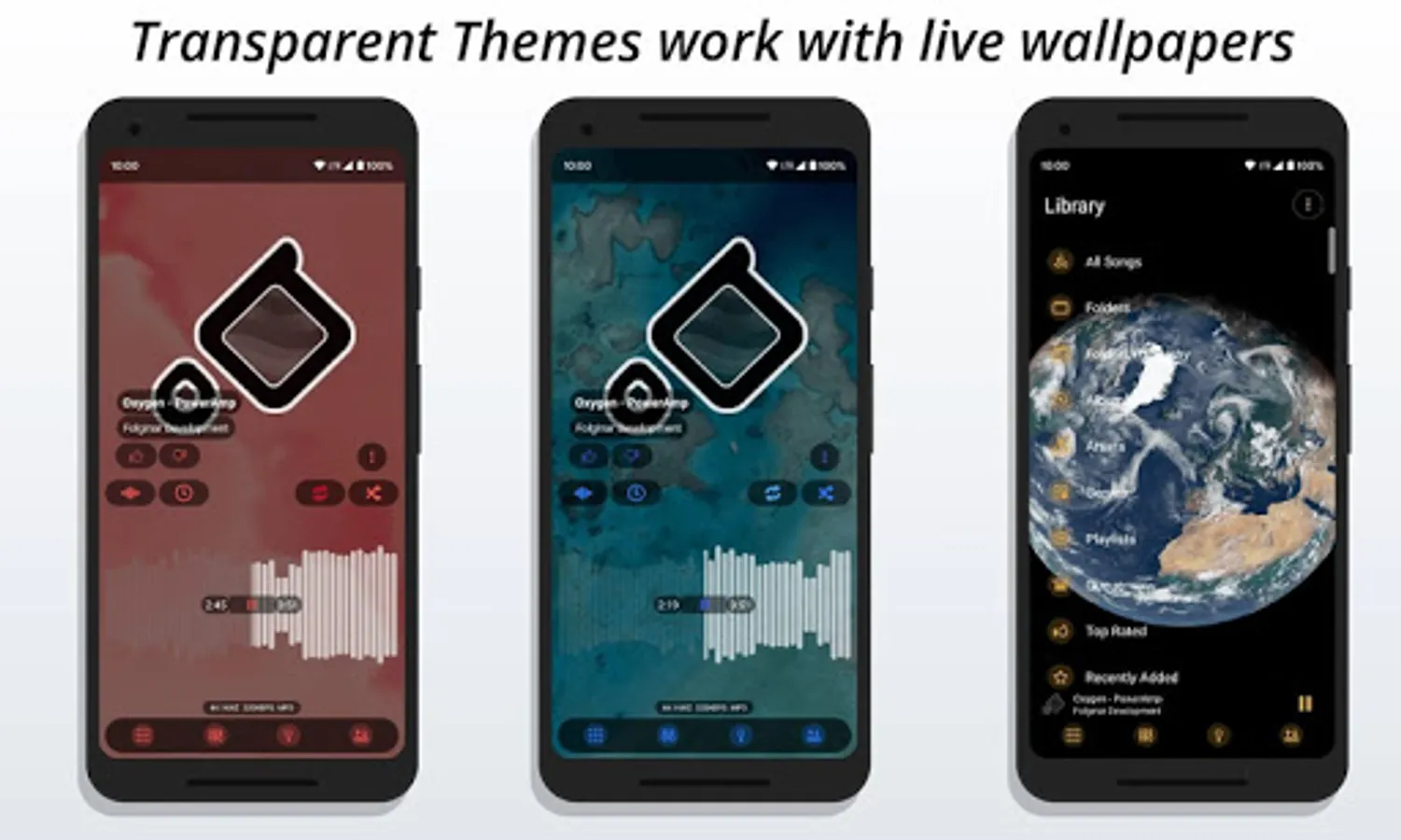 • Transparent themes which work with live wallpapers!