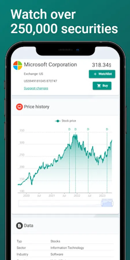 • Share your portfolios with other users if desired or use the watchlist feature to keep an eye on your favorites.