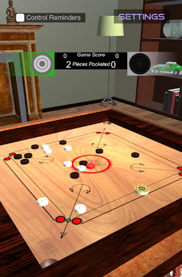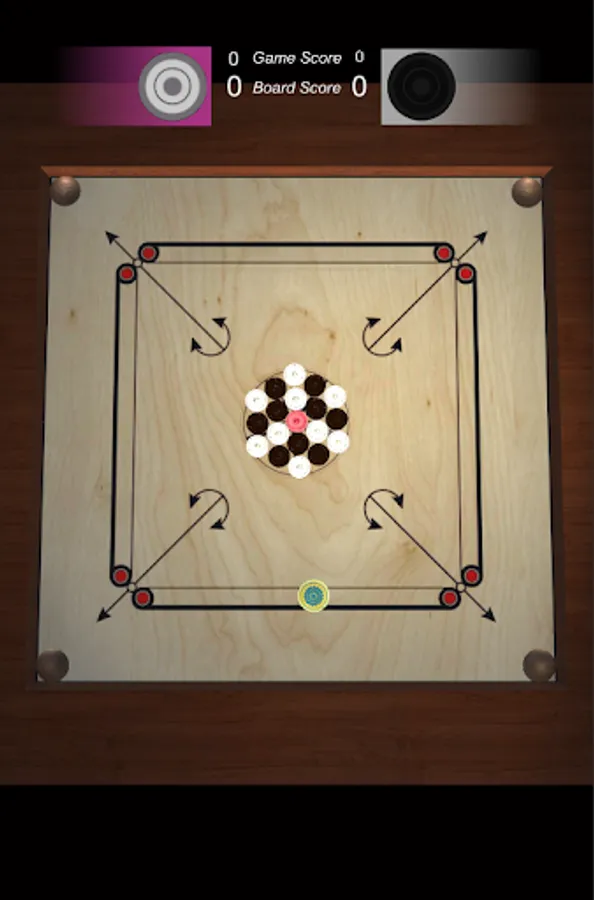 Originally developed to study actual carromboard shot strategy. The game can be played by 2 players locally on the same device, against a computer opponent at your chosen difficulty level and now even online with other players.
