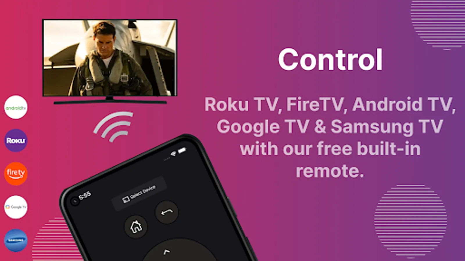 Supports Roku, Fire TV, Samsung Smart TV, and Android Smart TVs