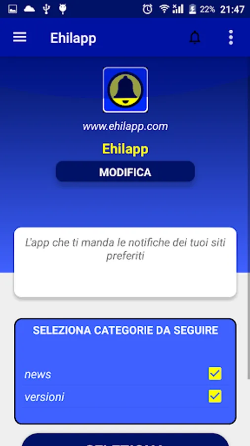 With Ehilapp you can follow a site that you like and get you to send notifications every time an article in a specific category comes out. If you are a site owner you can easily enter it.