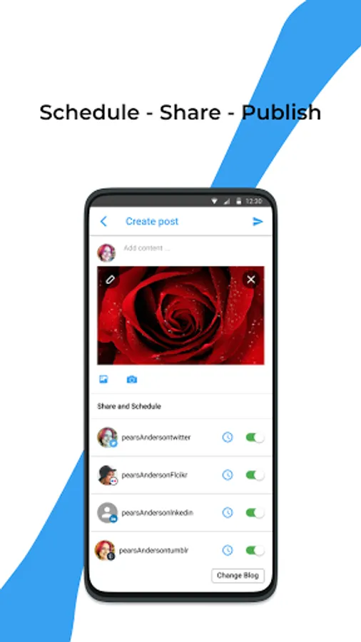 Connect and Share posts to Twitter, flickrs , tumblr , LinkedIn all from one place.