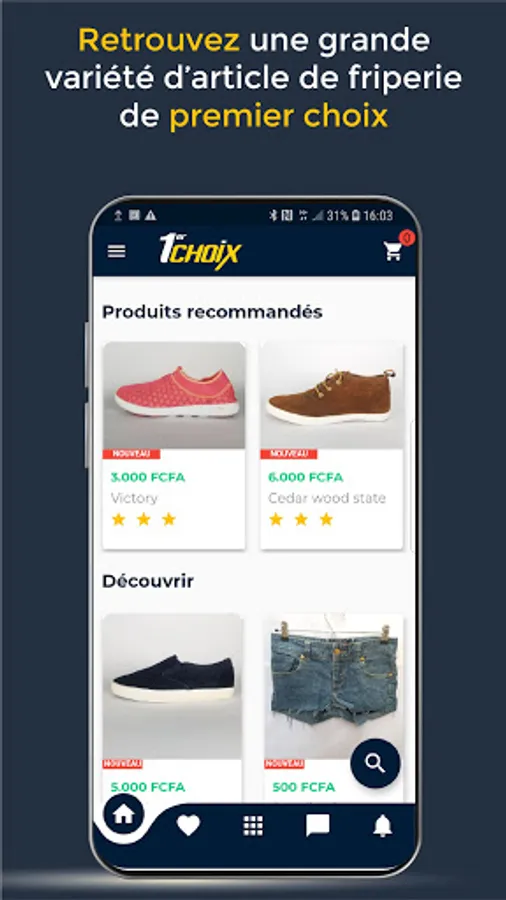 The 1st choice application for Android allows consumers to search for products, buy them in one click, recommend them to relatives, have them delivered to a branch or to their home, all with the possibility of paying online by Mobile money or Moov money.
