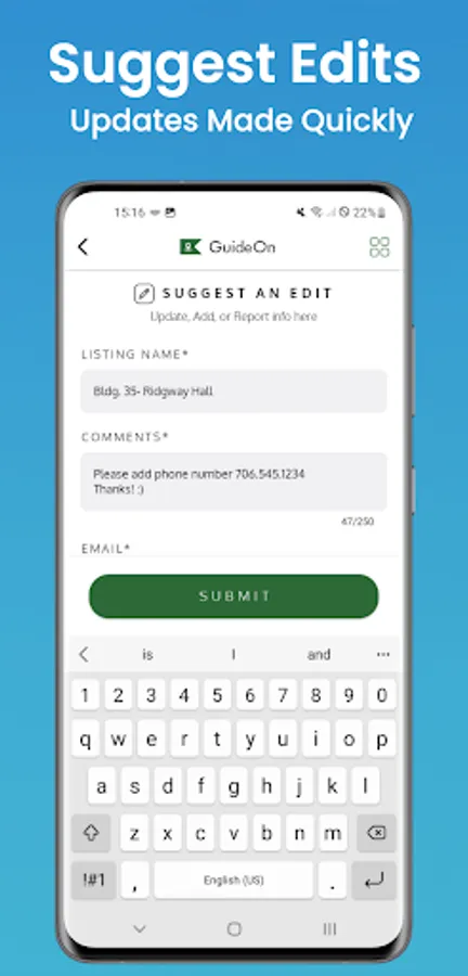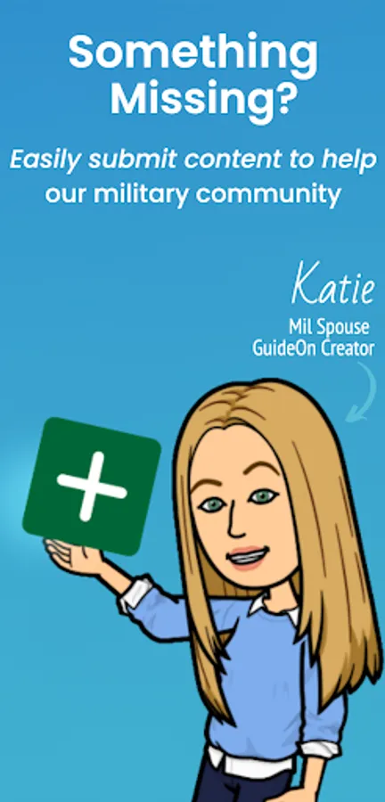 GuideOn is a "by our community, for our community" app created and managed by a military spouse and greatly enhanced by thousands of user contributions. All users can easily contribute to the growing content by submitting adds and edits for review through the "+" icon on the dashboard.