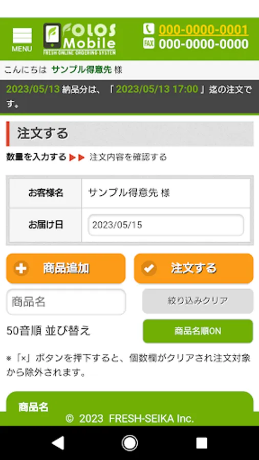 ・From the list of products with transaction history, you can enter the quantity of the corresponding product and place an order.