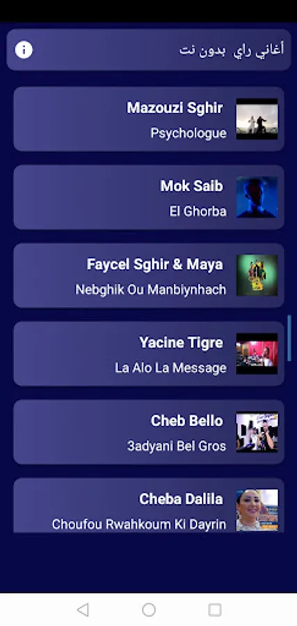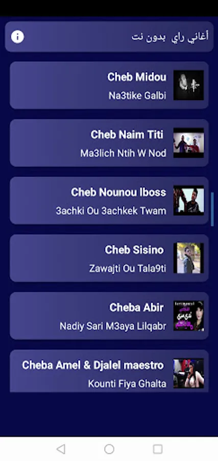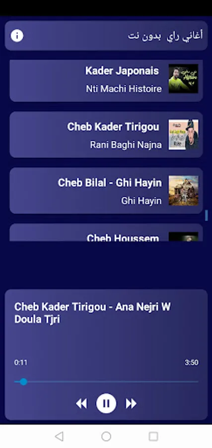 An application that includes more than 100 of the most amazing rai songs without the net, with excellent sound quality
