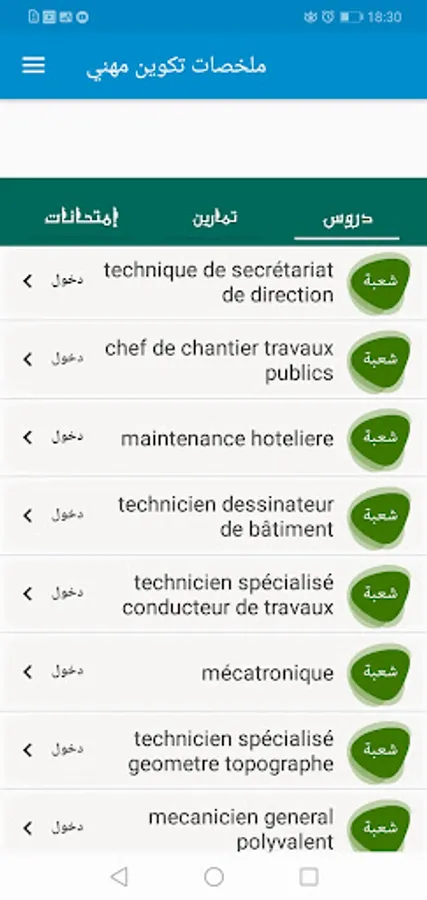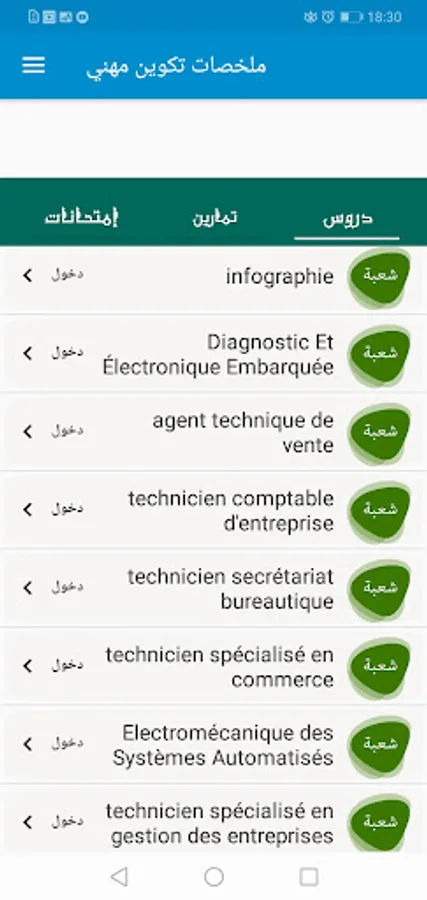 An application that includes all lessons, exams and exercises for all people of vocational training