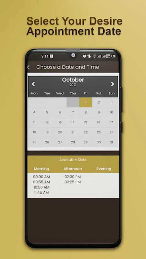 -Users can choose their desired date of appointment.