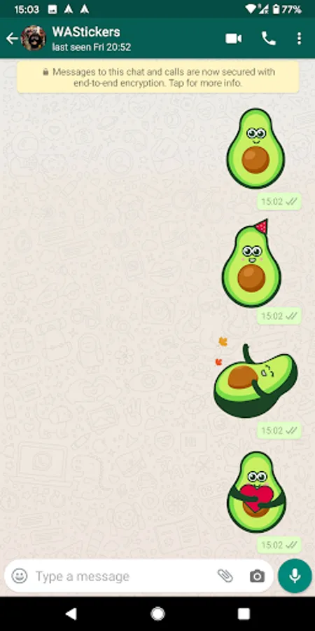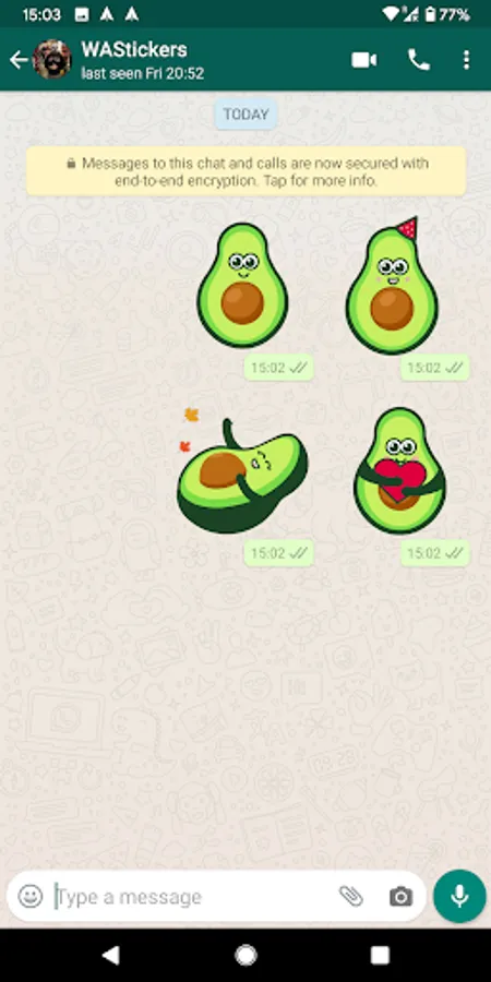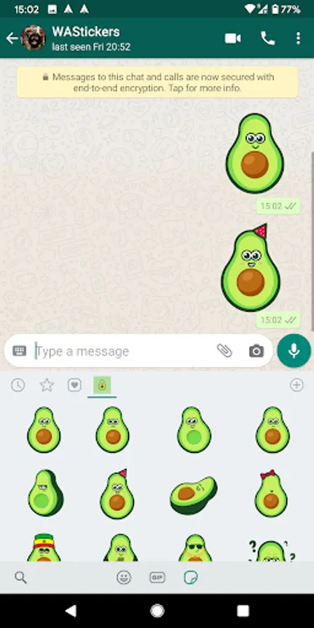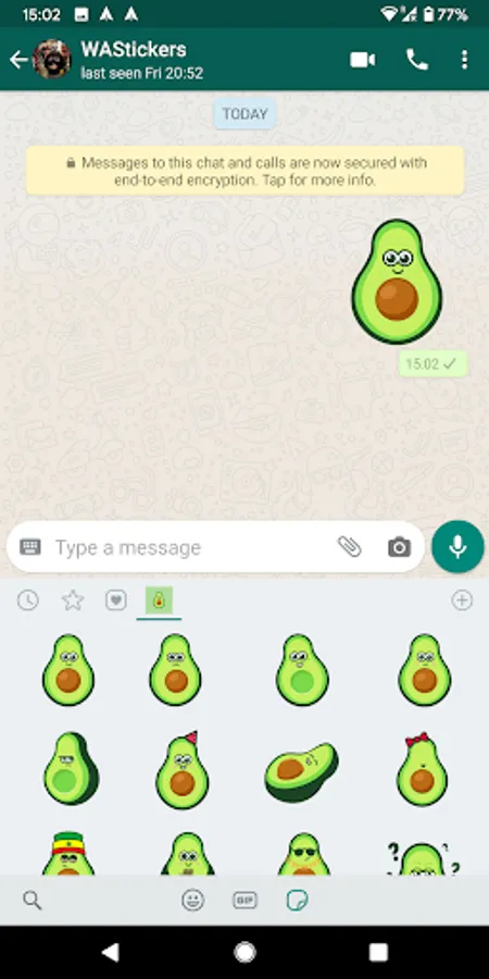 😊 Avocado Stickers (Wastickerapps) presents amazing Stickers for Whatsapp, as well as cool GIFs that will delight you with unusual animations and surprise your family and friends. You can easily and absolutely free diversify your stickers for whatsapp with a few clicks, getting all the benefits of wastickerapps. Our stickers range from all kinds of funny and cute emoji to flowers and love. Send your new animated stickers to any whatsapp chat.