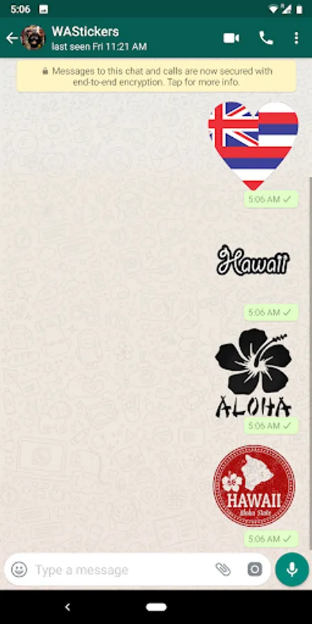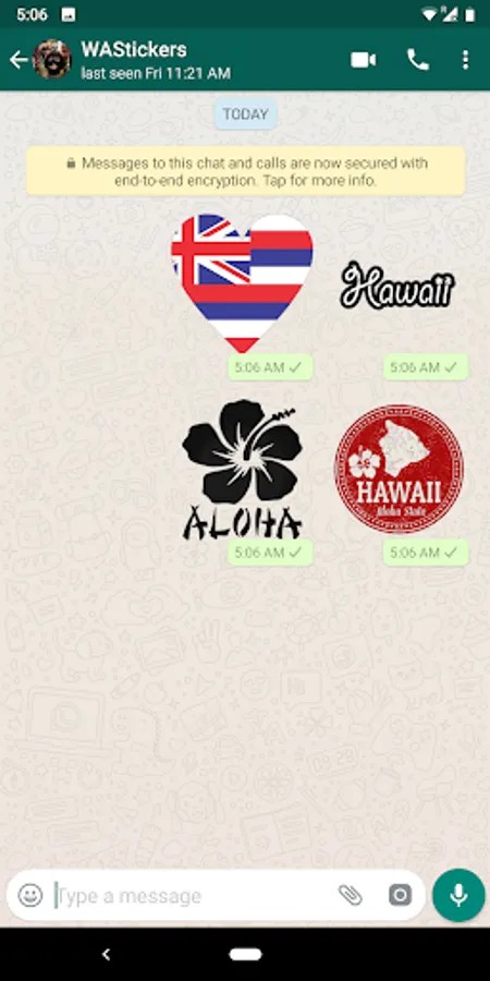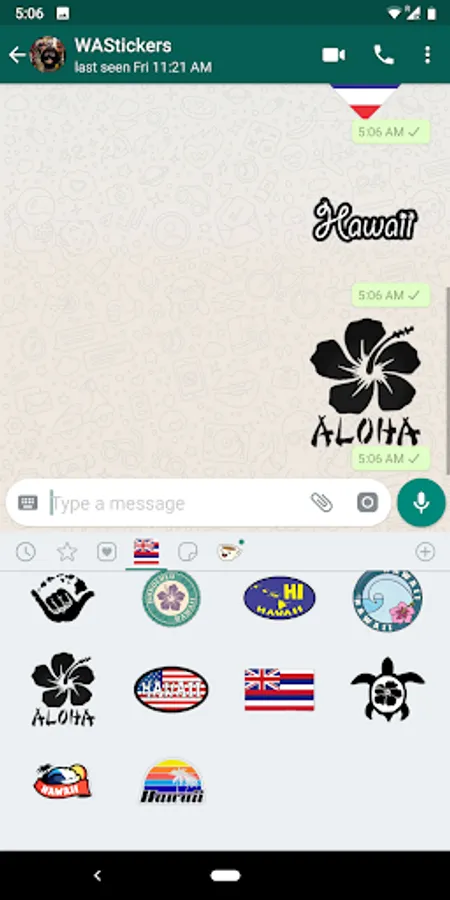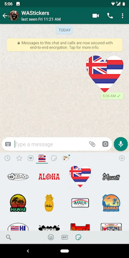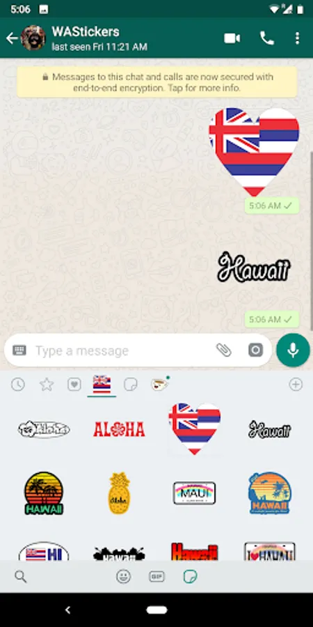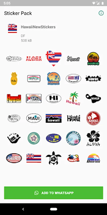 U.S.A. Stickers app features two oval sets, one square set, one badge set and one flag set for Hawaii State.