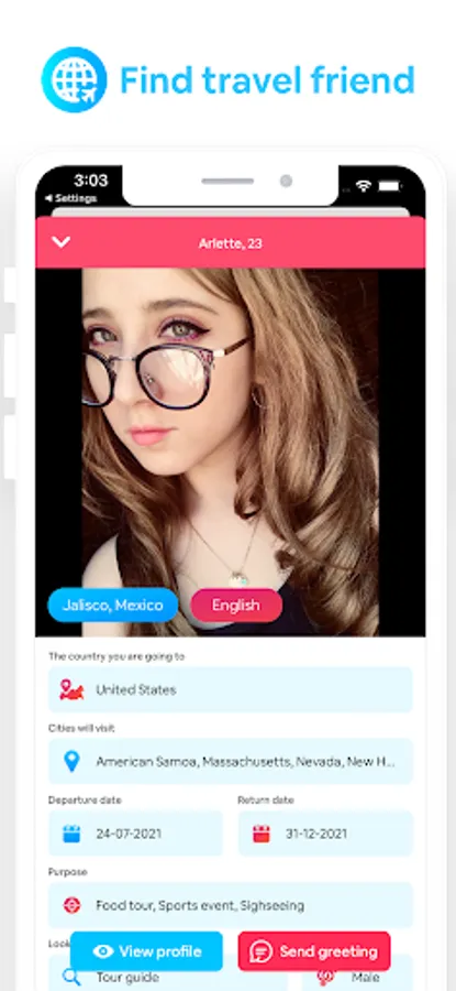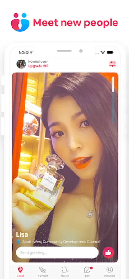 - Local people list : We will suggest you people from all over the world that match your search filter. You can like or say hello to them.