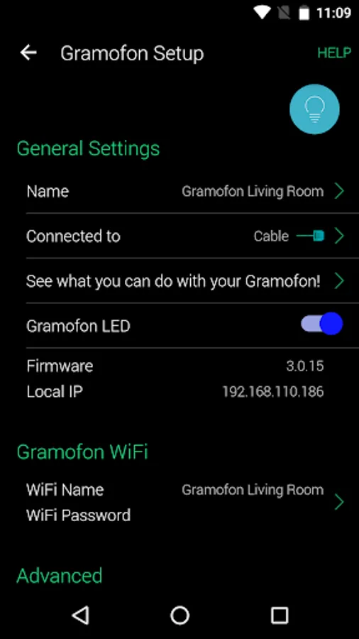 Configure your Gramofon with just a few taps. You can give a name to your Gramofon, turn the light on/off or configure it to extend your WiFi coverage.