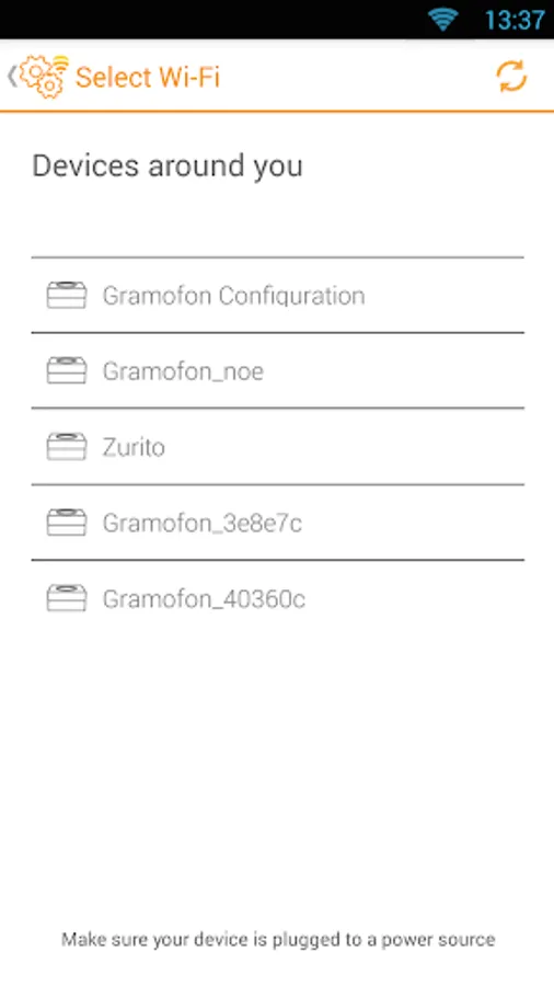 ** Android 5.0 Lollipop users: To configure your Gramofon connect first to your Gramofon's WiFi and then open the app to start the configuration. **