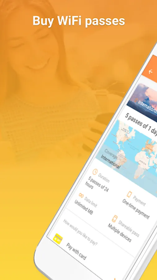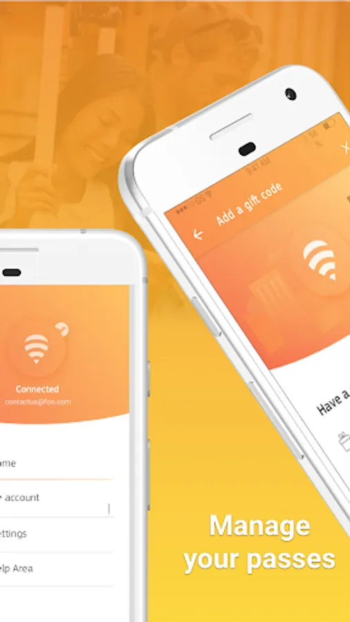 The Fon WiFi app is easy to use, you won’t even realise you’re using it! It only takes a couple of minutes to get started. The the app will automatically connect you to nearby hotspots, even when it’s closed. You can buy access passes whenever you want without leaving the app, in just one click, and save them to use later. Choose how long you need to be connected for, with flexible passes from 1 hour to 30 days.