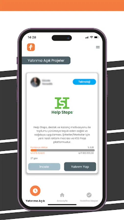 Membership to the system can be made from within the application. In order for the membership to be active, SMS, e-mail and e-government verification stages must be completed as required by legal obligations. The user, who has completed the verification steps, can apply for investment in any venture. Their investments are collected at Takasbank under the guarantee of the state. You can also follow the latest status of investments in the application.