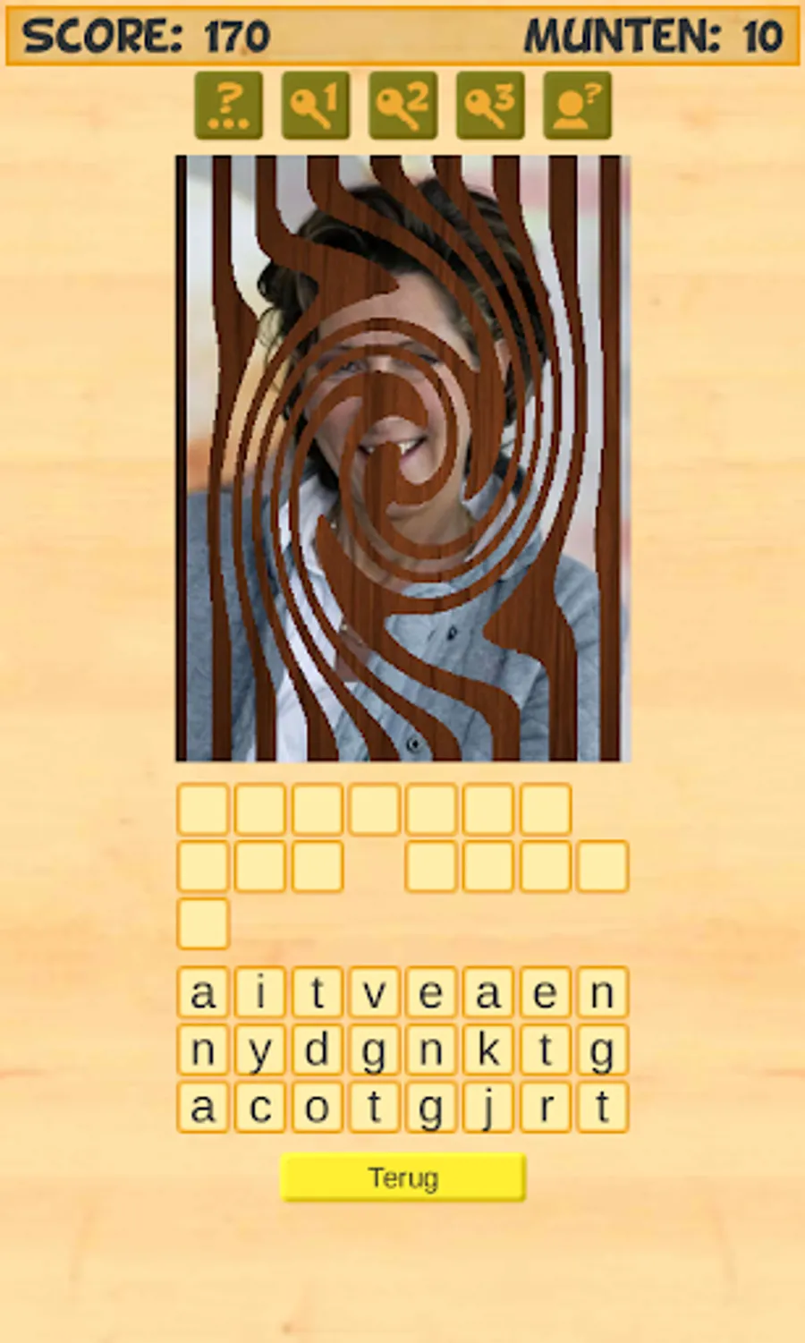 You get to see photos of famous people from the Netherlands. The photos are slowly becoming clearer. Insert the data characters in the right place to form the name.