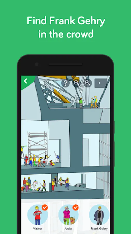 Where’s Frank? Meet the people behind the Fondation Louis Vuitton. In this fun game you can search through the gallery’s visitors to see if you can find the key members of the team – from the man who operated the crane to the curator who chose the art to Frank Gehry himself – and, at the same time, discover what each role involves.
