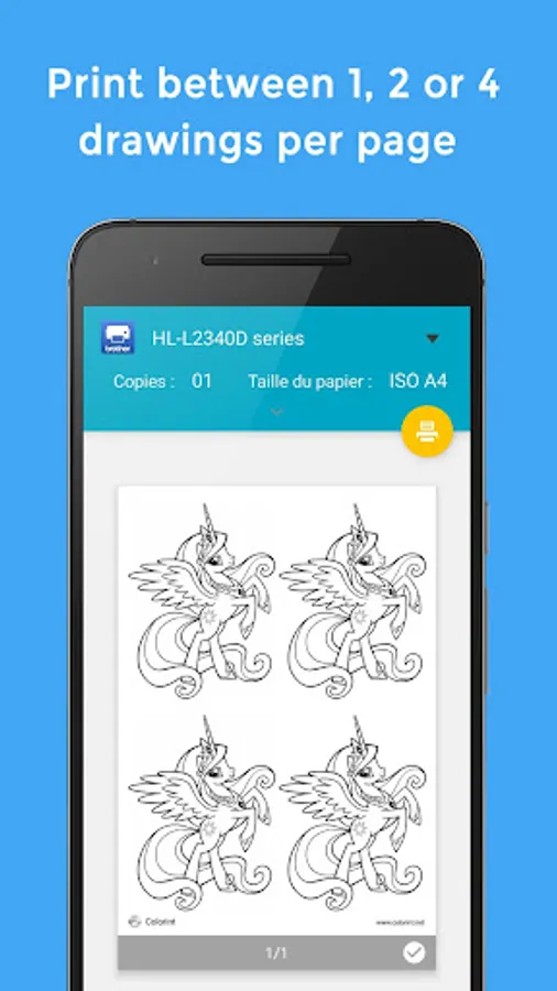You can print coloring pages in 3 different layouts in order to save paper and print more drawings choosing between 1, 2 or 4 drawings per page.