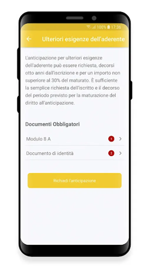 Through the app you can ask for an advance or redemption of the amount accumulated. Few steps and your request will come directly to the Fund saving time