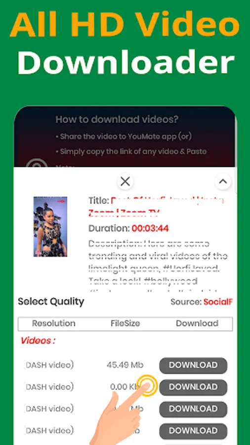 This video downloader app help you download video with just one click. Enjoy video download with this free video downloader app.