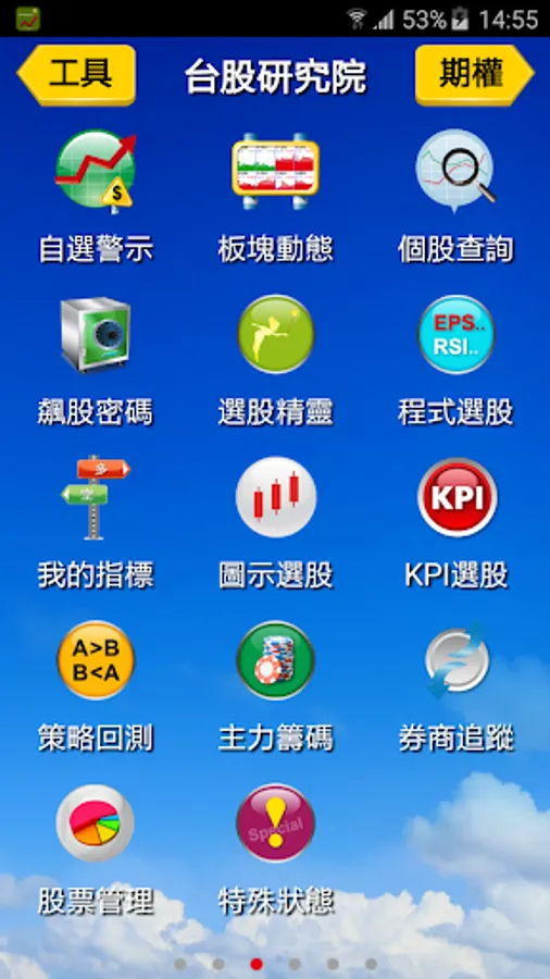 提供即時面、技術面、基本面及籌碼面等四種面向共計超過三十種以上的類別資料,經由系統雲端智慧篩選後匯總排序,可輕鬆掌握市場變化。