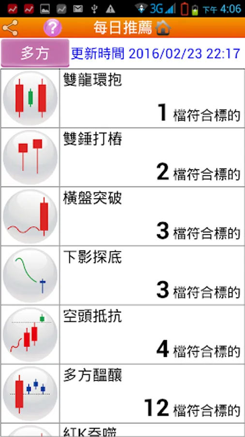 Custom proprietary K-line patterns, whether it is rising, declining or K bar shape and size can be set according to their own judgment; without having to learn complicated programming language to write, you can have the opportunity to find out and turning the fundamentals Good potential for stocks.