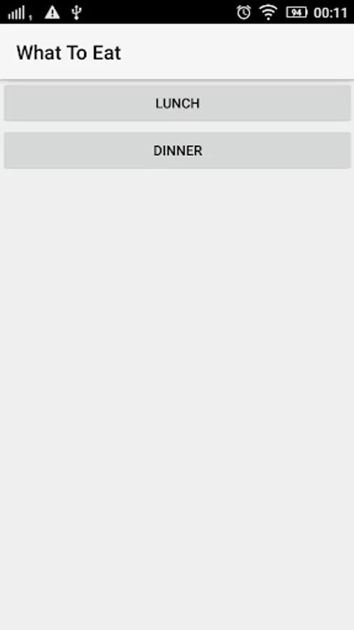 An app which addresses eating dilemmas (an inevitable consequence of food overabundance) by randomly choosing them for you. Only lunch and dinner categories are available. What is there to fret about breakfast anyway?