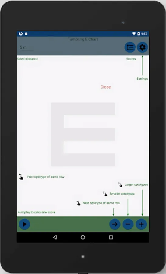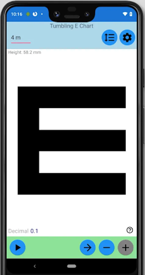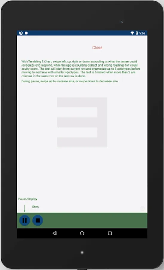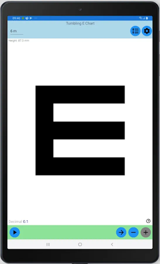 Prevention is better than cure. Designed for children older than 6, parents with young children, and general practitioners, this app displays optically precise optotypes of tumbling E chart for you to measure distant visual acuity accurately in order to detect nearsightedness or myopia and early, so you can take preventive measures and seek help from medical professional early to prevent pseudomyopia from becoming myopia, or prevent nearsightedness from getting worse.
