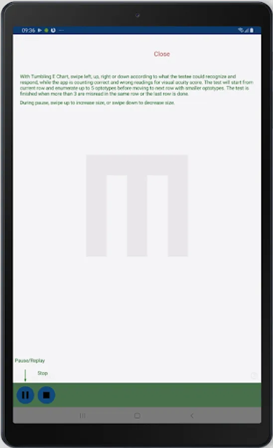 While this app may replace Tumbling E Chart in print, however it cannot replace doctors and optometrists who carry out comprehensive tests for your eyes. Please visit optometrists regularly and seek help from medical professional at early signs of visual acuity problems.