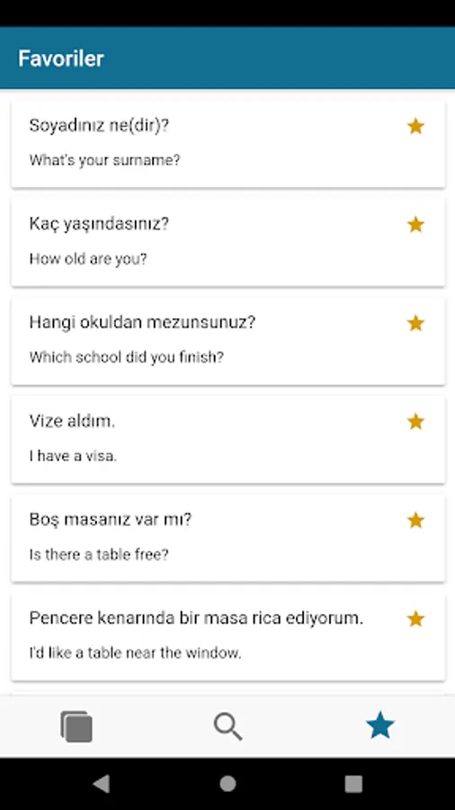 This application, which contains practical sentences in various categories of English, aims to solve the basic language problems that will be encountered when traveling or when speaking with a stranger in English, in the easiest and practical way. Due to the offline work can be used as a dictionary or translation program without internet connection. Common English sentences are provided with vocalization, pronunciation and translations. This application, which will be useful for learning English, is an extremely useful guide and dictionary for those who speak English and who do not know English at all.