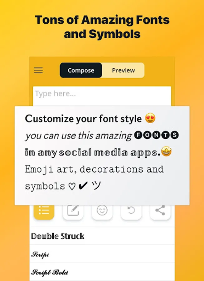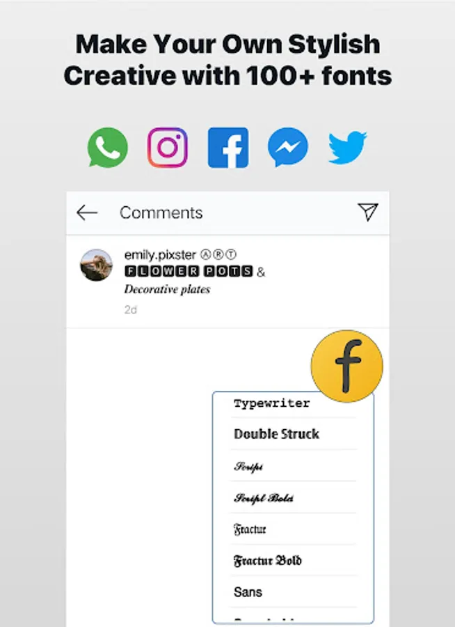 Font changer creates awesome text messages, Facebook status, Instagram bio & tweets.