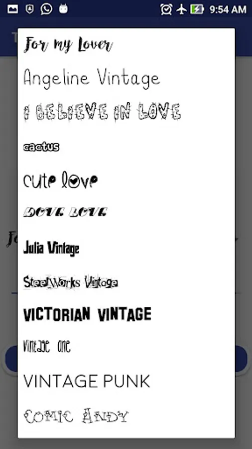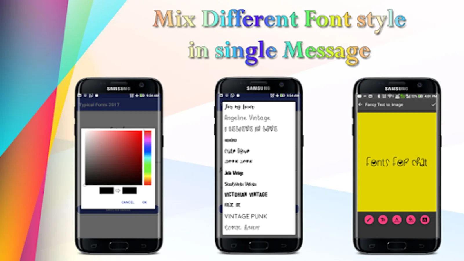 With the function "Convert Font (Letter) to Image" you can create nice messages and then share them in your social networks or save them in the Gallery of your device, your imagination will be the limit. We have beautiful types of Vintage, Retro, or Love font.