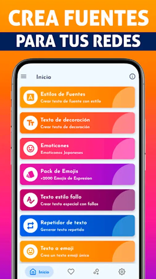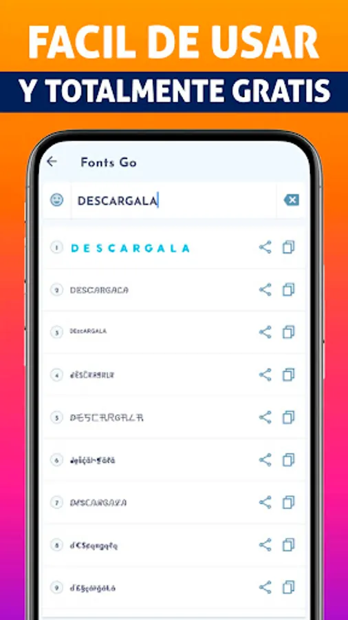 Enter FONTSGO quickly: It's so easy to use, you just enter the app, choose the type of font you need and it will automatically generate a list of hundreds of unique fonts for you to use, you can also activate the bubble mode to easily place fonts in any app And done!