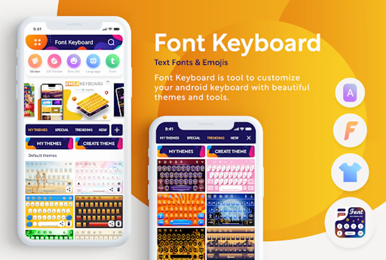 Font Keyboard GIF, Emojis Stickers - Fonts, Emoji Keyboard fancy font keyboard apps for free stylish custom keyboard 2022. Fancy Fonts Keyboard is a stylish custom fonts keyboard for Android with cool fonts keyboard 2022, 1000+ emojis Keyboard With free font Keyboard, Emojis & Themes Keyboard, emoticons font Keyboards app, GIF text & Stickers personalized themes Keyboard.