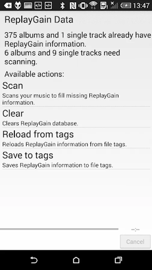 * Full ReplayGain support (playback and scanning).