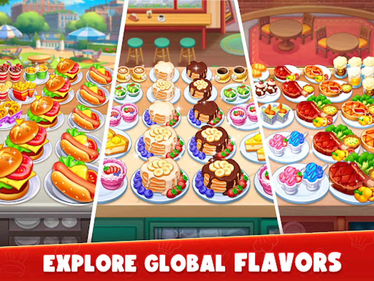 Cook food from a wide range of culinary cuisines! From fast food such as savory burgers, pizzas, to mouth-watering steak, seafood, sushi roll, from snacks to delectable desserts. Unlock unique ingredients, food, dishes as the chef master.