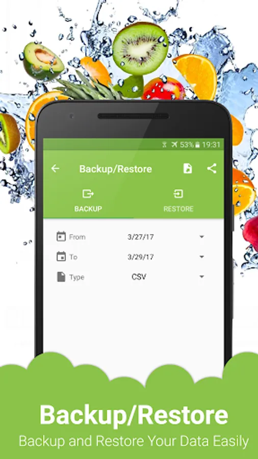 - Backup your data easily : you can backup your food journal data also you can restore it later.