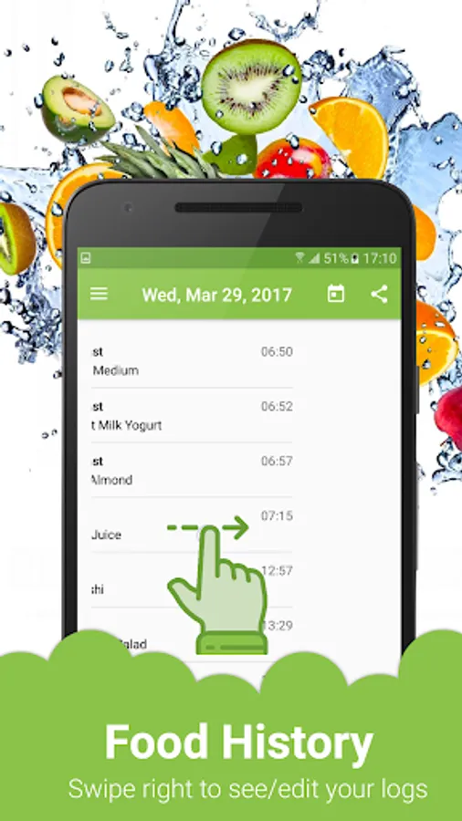 - Easy navigation between days: if you want to see or edit your food tracker history just swipe to the right