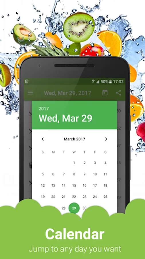 - Built-in Calendar : our Food Diary provides you a calendar to jump to any day you want to see your food tracker history or edit it.