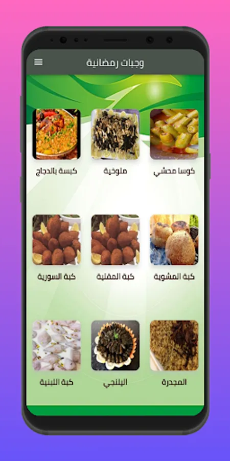 The application contains Ramadan dishes on Saudi dishes, Syrian dishes, and Algerian dishes