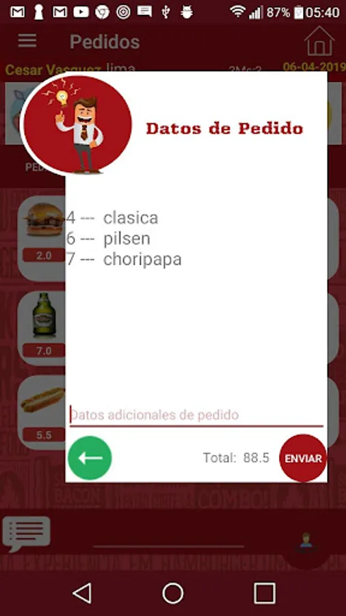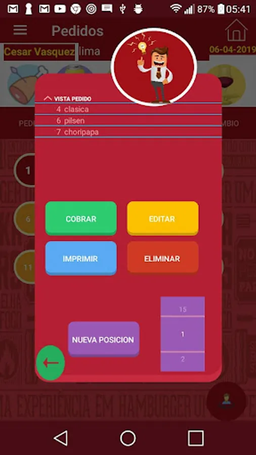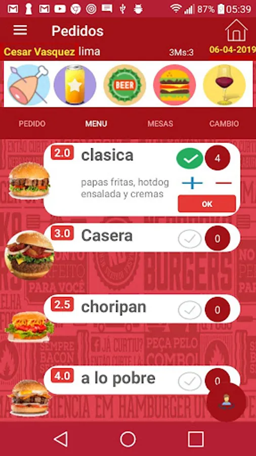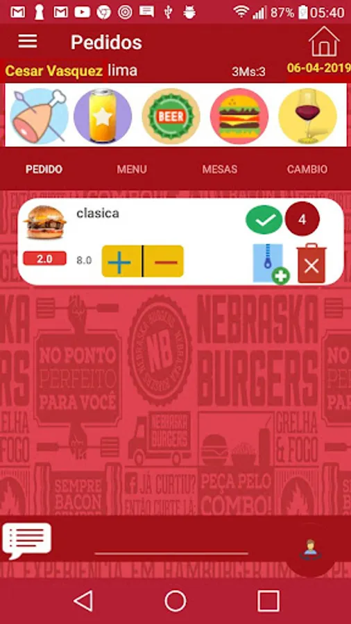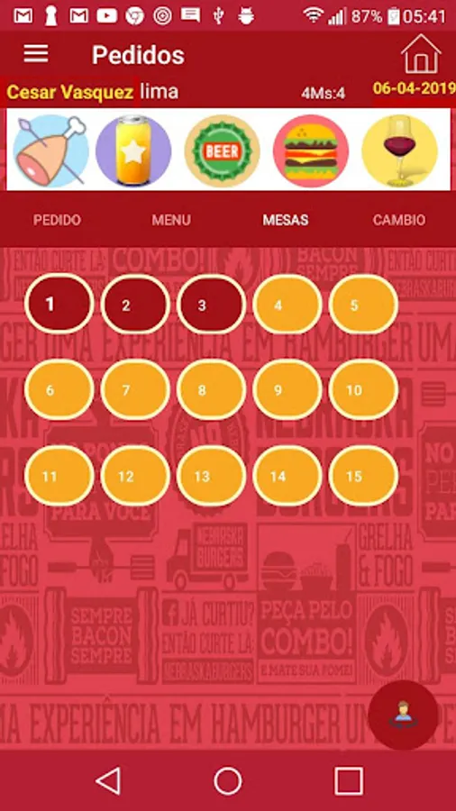 app complement of a web system for restaurant management, modules available order management, warehouse, products, cash flow.