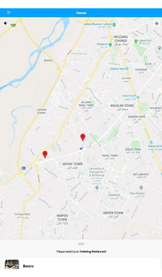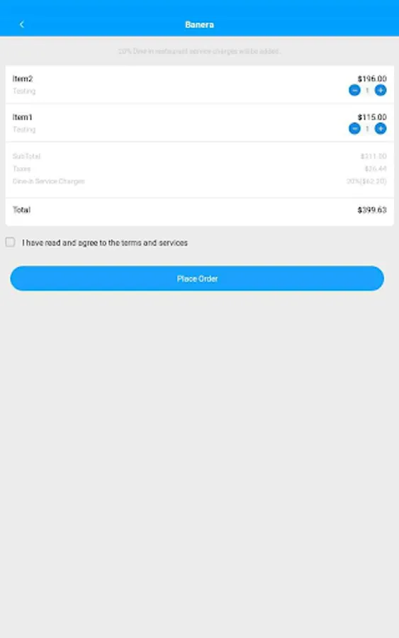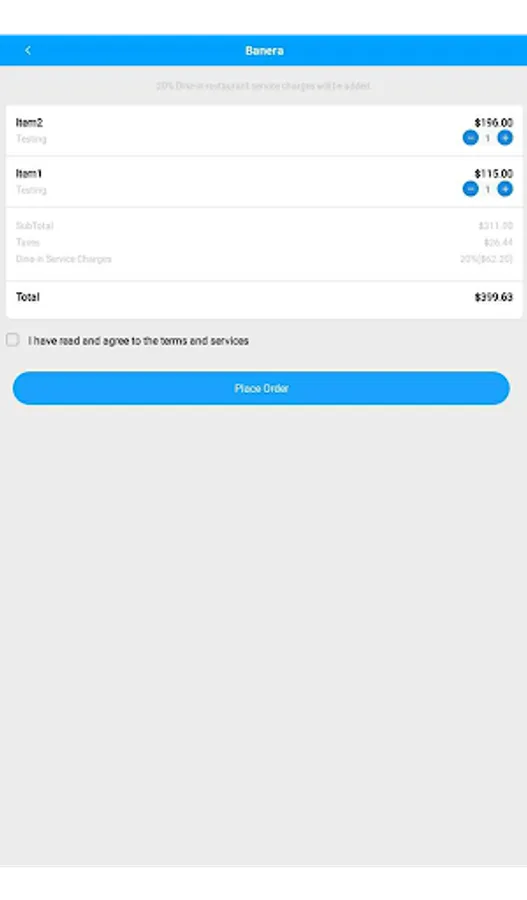 In the next screen (Select your ORDERING RESTAURANT) select a restaurant you would like to order from and choose from their menu. You will get their food served to your current dine-in restaurant.