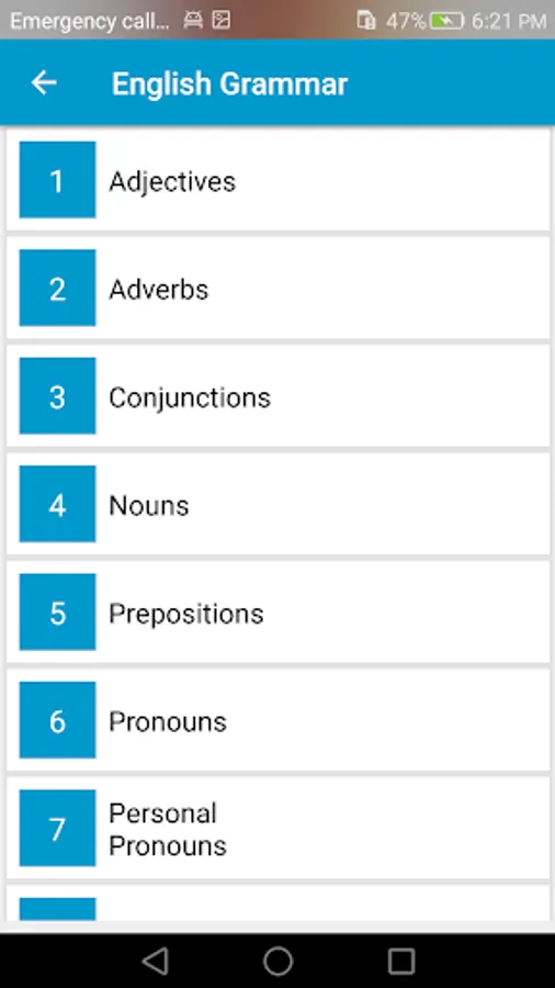 1- Parts of the speech Adverbs, Adjectives, Conjunctions, Nouns, Prepositions, Pronouns, Personal Pronouns, Verbs
