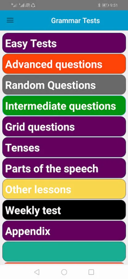 With this app you can Test your grammar skills with more than 7000 questions and also you can see the correct answers with the explanation and this question includes in sex categories from bigender to advanced levels